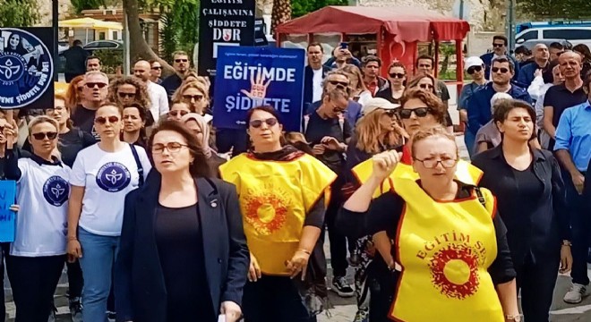 Eğitim - Sen Çeşme Şubesi Başkanı Gülay Canbek ve Eğitim - İş Sendikası Çeşme Şubesi Başkanı Demet Özer’in yapmış oldukları ortak basın açıklamasında öğretmenlerin güvenliği ve eğitim sistemindeki şiddetle ilgili endişeler dile getirilirken Milli Eğitim Bakanı Yusuf Tekin’e, ‘Okulda şiddeti önlemek için daha kaç eğitim emekçisinin can vermesi gerekiyor?’ diye sordular.