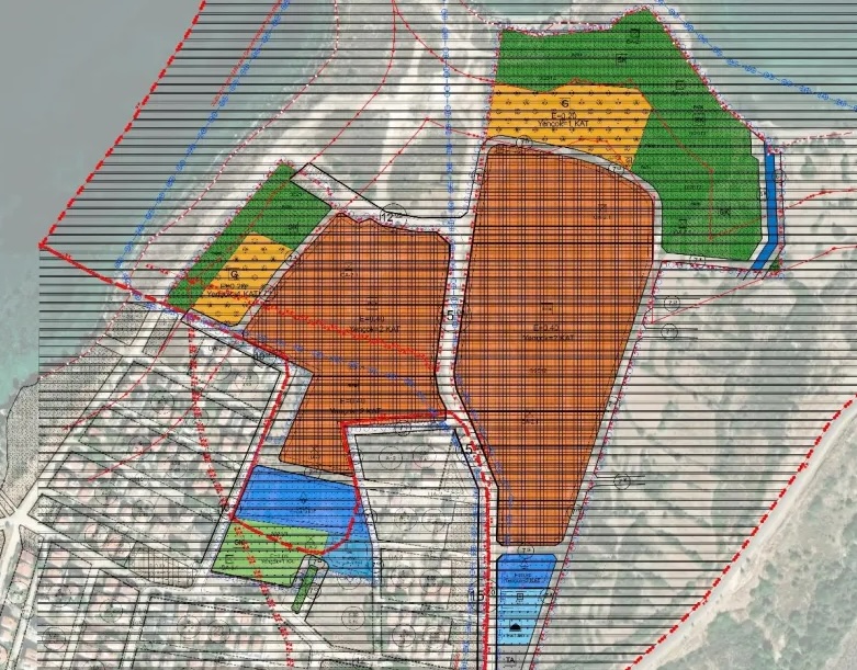 Askıya çıkan 1/25000 ve 1/5000 ölçekli Koruma Amaçlı Nazım İmar Planı ve 1/1000 ölçekli Koruma Amaçlı İmar Planı tekliflerine 3021 ada 1 parsel ve 2512 parsel “Turizm-Konut Alanı” ve “Günübirlik Tesis Alanı” ilan edildi.