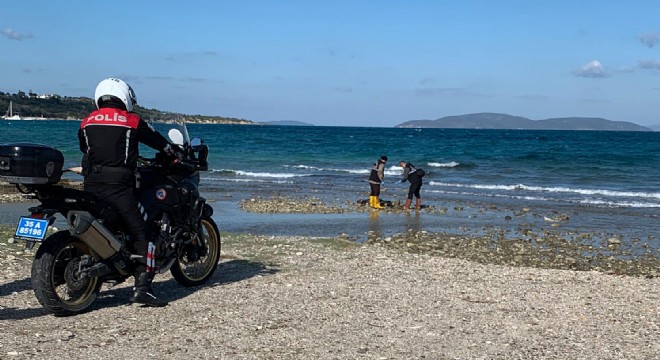 Bu öğlen saatlerinde kıyıya vurmuş bir şekilde bulunan erkek cesedinin yasa dışı yollarla yurt dışına kaçmak isteyen bir düzensiz göçmene ait olduğu tahmin ediliyor.