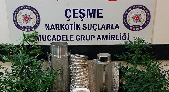 Çeşme Narkotik Suçlarla Mücadele Grup Amirliği ekiplerinin bugün düzenlediği operasyonda evinde uyuşturucu yetiştirmek amacı ile düzenek kuran A.V, ekipleri tarafından gözaltına alındı.