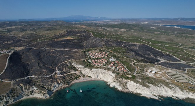 Çeşme TV’den İbrahim Evrim Ayral’ın gündüz havadan görüntülediği Ovacık yangın alanının yerleşim alanlarını tamamen çevrelediği görüldü.