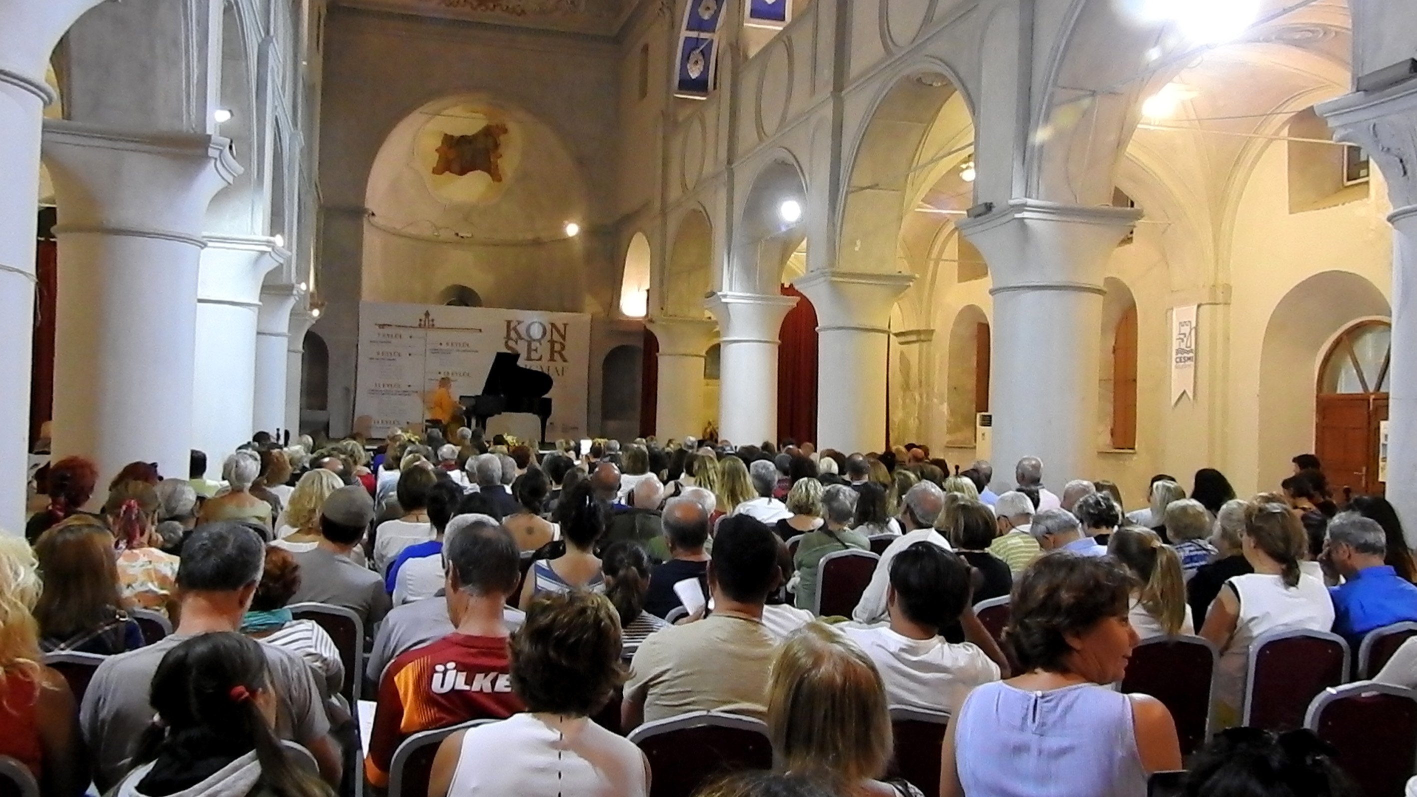 Devlet Sanaçısı Gülsin Onay, Çeşme çarşısındaki tarihi Aya Haralambos Kilisesi'nde gerçekleştirilen açılış konserinde, Johann Sebastian Bach, Ludwig Van Beethoven, George Enescu ve Franz Liszt'in unutulmaz eserlerini piyanosuyla yorumladı. Onay, konserinin son bölümünde ise genç yetenek, Ankara Bilkent Konservatuvarı Öğrencisi, 15 yaşındaki Tuna Bilgin'i sahneye davet ederek, Adnan Saygun'un bir piyano sonatını çaldırttı. Tuna Bilgin'in başarılı yorumu ise seyircilerden büyük alkış aldı.