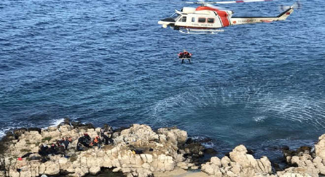 Yunanistan’ın Sakız Adasına yasa dışı yollarla gitmek isteyen üç düzensiz göçmeni Sahil Güvenlik helikopteri kurtardı.