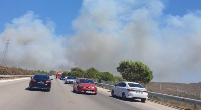 Çeşme Karaköy Baraj bölgesinde başlayan yangın yüzünden Çeşme-Uzunkuyu yolu kapandı. Ekipler takviye birimlerle yangını söndürmeye çalışırken şiddetli rüzgar çalışmaları engelliyor.