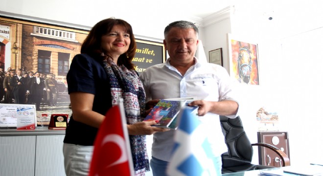 Yunanistan İzmir Başkonsolosu Argyro Papolia, eşi Nikos Stefanos ve VFS Global Operasyon Çıkış Sorumlusu Sertan Aslantürk ile birlikte, Çeşme Esnaf ve Sanatkarlar Odası Başkanı Osman Köfüncü'yü ziyaret etti.