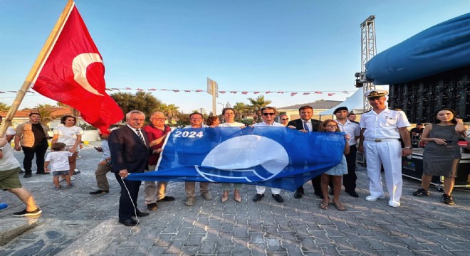 Törende sembolik olarak denizden botla getirilen mavi bayrak Eliz, tarafından alınıp Çeşme Kaymakamı Mehmet Maraşlı ve Çeşme Belediye Başkanı Lal Denizli’ye verildi. Mavi Bayrak, Ilıca Halk Plajı’nda protokol üyeleriyle beraber göndere çekildi.