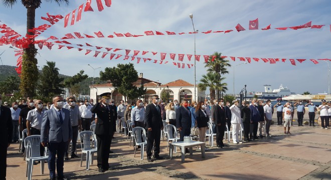 Kutlama töreninde Koronavirüs önlemleri dikkat çekerken, Çeşme Kaymakamı Ünal Çakıcı, Çeşme Belediye Başkanı Ekrem Oran, Çeşme Cumhuriyet Başsavcısı Burak Kocaoğlu, İlçe Emniyet Müdürü Gürcan Alev, Garnizon Komutan Vekili Bilal Bayat, İlçe Jandarma Komutanı Yarbay Emin Yılmaz, Meclis Üyeleri, Kamu kurum ve kuruluş temsilcileri, siyasi parti ve STK temsilcileri, Çeşme Kadın Dayanışma Platformu ve vatandaşlar törene katıldılar.