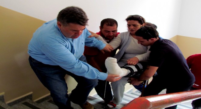 Bacağı kırık kadın, sandalyeyle üst kata taşındı