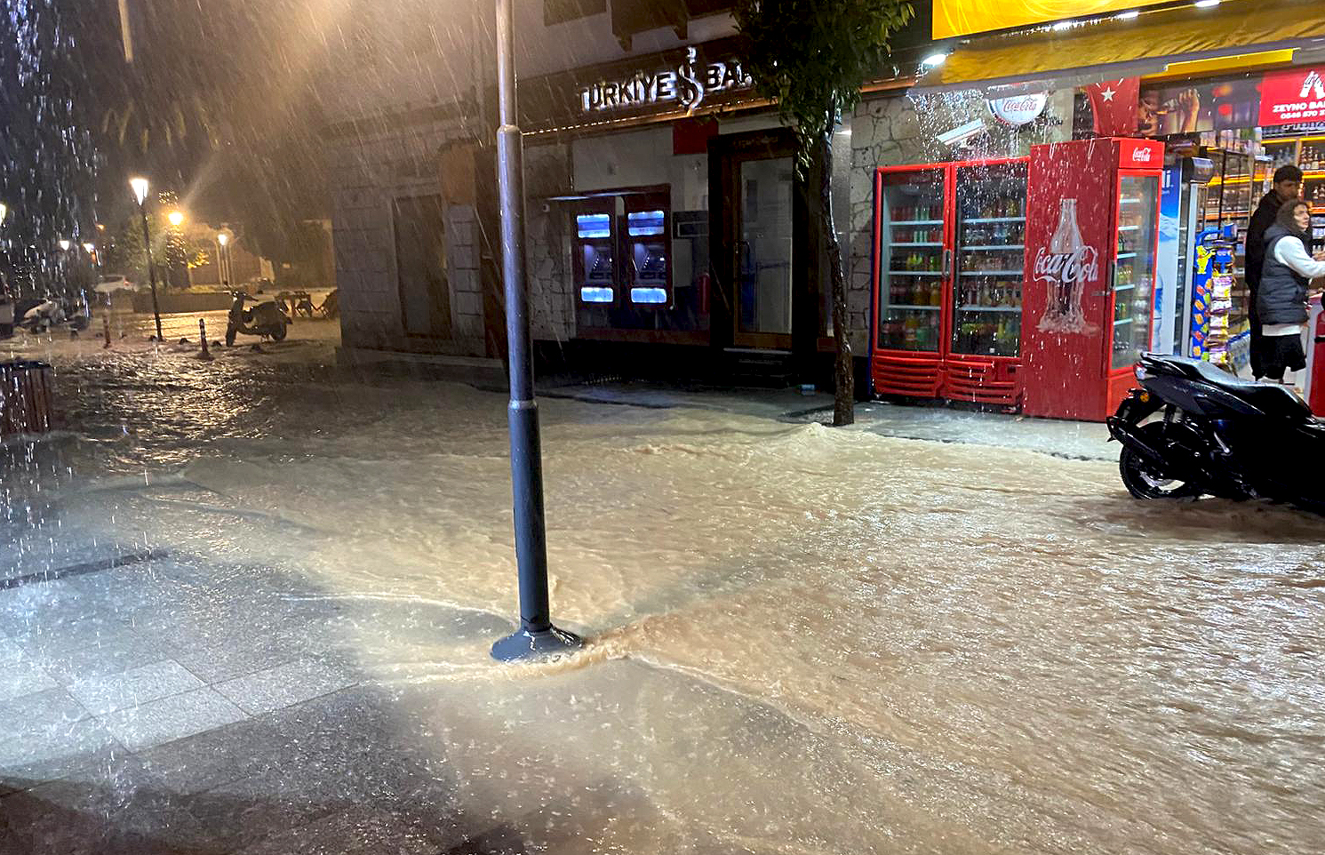 Bugün öğleden sonra başlayan ve devam eden gök gürültülü sağanak yağmur Çeşme'yi sular altında bıraktı. İlçede birçok mahalle ve sokakta su baskınları yaşarken çok sayıda esnaf mağdur oldu.
