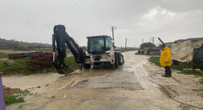 Çeşme Belediyesine bağlı Temizlik ve Fen işleri ekipleri su baskınlarını önlemek için yoğun çaba sarfederken tarım alanlarının da sular altında kaldığı öğrenildi.