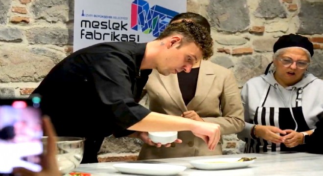 İzmir Büyükşehir Belediyesi’nin Meslek Fabrikası’nda düzenlediği sağır ve işitme engelli kursiyerlere yönelik pastacı çıraklığı kursundan mezun olan kursiyerler, İzmir Çeşme’de restoranı bulunan ve sosyal medya platformlarında birbirinden özel tariflerini paylaşan şef Rıfat Yurttaş ile buluştu. Engelli Çalışmaları Şube Müdürlüğü’nde görevli işaret dili çevirmenleri Özlem Özer ve Melek Uslular’ın çevirmenliğiyle katılımcılarla iletişim kuran Yurttaş, onlarla birlikte Ege mutfağına ait meze ve zeytinyağlı yemekler yaptı.