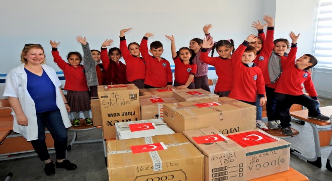 Çeşme 16 Eylül İlkokulu 1/A ve 2/A öğrencileri, topladıkları çeşitli malzemeleri, Kars'ın Selimiye ilçesi Başköy İlkokulu'na gönderiyor.