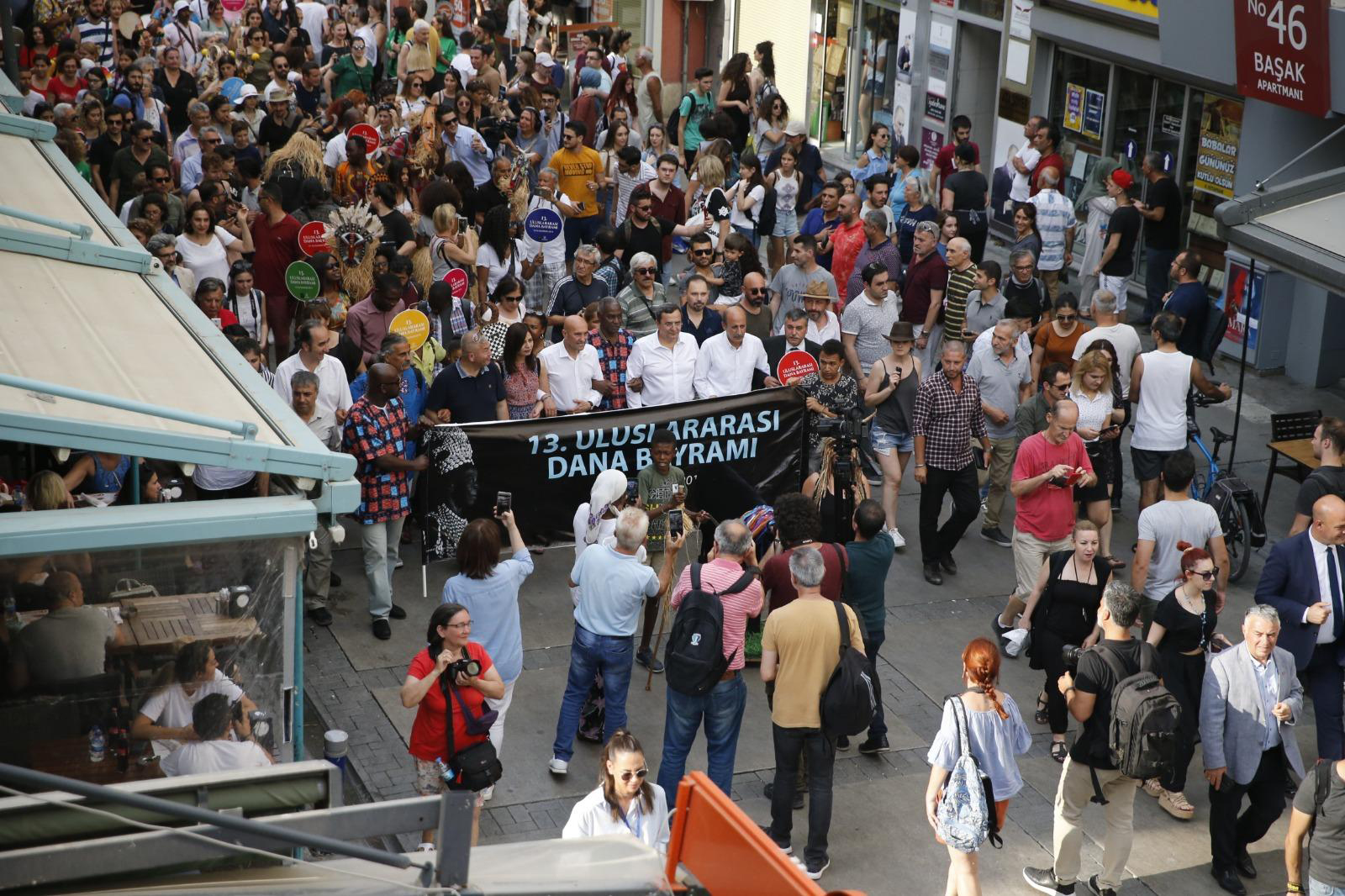 Konak Belediyesi’nin Afrikalılar Kültür Dayanışma ve Yardımlaşma Derneği ile birlikte Afrika kökenli hemşehrilerimizin kültürlerini yaşatmak, tanıtmak amacıyla düzenlediği ve iki gün sürecek olan 13. Uluslararası Dana Bayramı Türkan Saylan Kültür Merkezi’nde fotoğraf sergisi, panel, slayt gösterisi, müzik dinletisi ve zeybek gösterisi ile başladı. Ardından İzmirlilerin yoğun katılımıyla Saat 18.00’de Kıbrıs Şehitleri’nde kortej yürüyüşü gerçekleştirildi. Korteje, İzmir Büyükşehir Belediye Başkanı Tunç Soyer, Konak Belediye Başkanı Abdül Batur, etkinliğe yurtiçi ve dışından gelen konuklar ile çok sayıda İzmirli katıldı. Kıbrıs Şehitleri ÖSYM önünden başlayan kortej yürüyüşe İzmirliler büyük ilgi gösterdi. Kortej Afrotürk ritim ve dans grubunun coşkulu ezgileri ve dansları eşliğinde İzmirlileri selamlayarak sevinç Pastanesi önüne kadar yürüdü. Kortej sonunda ise Türkan Saylan Kültür Merkezi önünde Melis Sökmen’in mini konseri geceye son noktayı koydu.
