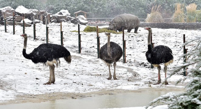 İzmir’de uzun yıllardan sonra ilk kez görülen etkili kar yağışına en çok Doğal Yaşam Parkı’ndaki hayvanlar şaşırdı.