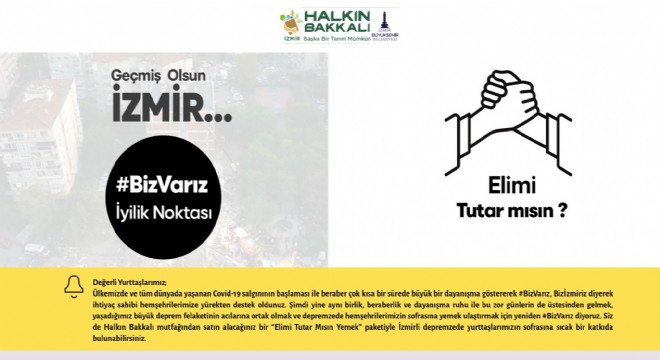 Kampanyaya katılmak isteyenler Biz İzmir ve Halkın Bakkalı dijital platformlarındaki Elimi Tutar mısın yemeği, gıda paketi ve hijyen paketi seçeneklerinden istedikleri miktarda seçebilir. Desteklerden Elimi Tutar mısın yemeği 25 TL, gıda paketi 75 TL ve hijyen paketi ise 40 TL olarak belirlendi.