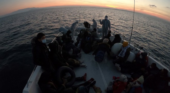 Çeşme Karaada açıklarında Yunanistan unsurlarınca Türk Karasularına itilen 25 düzensiz göçmen düzenlenen operasyonla kurtarıldı.
