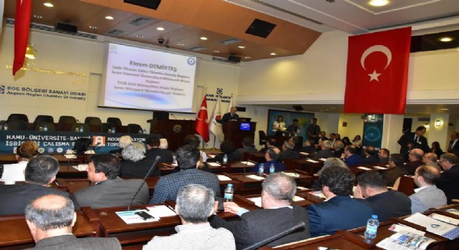 İTO Yönetim Kurulu Başkanı Ekrem Demirtaş ise ticaret odasının kenarda durma hakları olmadığını belirterek, "Her şeye elimizden geldiğince yetişmeye çalışıyoruz. Türkiye'de ilk defa bir meslek kuruluşu olarak bir üniversite kurduk. Sanayi odası değiliz diye kenarda durmadık. Apartman altında çalışan küçük imalathaneler için organize sanayi bölgesi kurduk. Teknopark kurmalıyız diye yola çıktık. Yani biz bir dörtgen kurduk. Oda, üniversite, teknopark, OSB ve iş dünyasının hizmetindeyiz. Bu yatırımların hepsini öz kaynağımız ile yaptık. Teknoparkın maliyeti 20 milyon lira, Bilim, Sanayi ve Teknoloji Bakanlığı 1 milyon lira destek verdi. Odamız zengin değil. Biz bütün paramızı hizmete kullanıyoruz. İzmir Ekonomi Üniversitesi'nin maliyeti 4 milyon 150 bin dolar. Girişimcileri ve inovasyonları desteklemek adına önemli bir çalışmamızı daha bu yıl hayata geçirdik. Bütçemize 500 bin lira para koyduk. İnovatif projesi olanlara çağrı yaptık. Projenizi anlatın karşılıksız 50 bin lira verip size yatırımcı bulacağız dedik. 178 başvuru oldu ve aralarında gerçekten heyecan verici projeler var" diye konuştu.