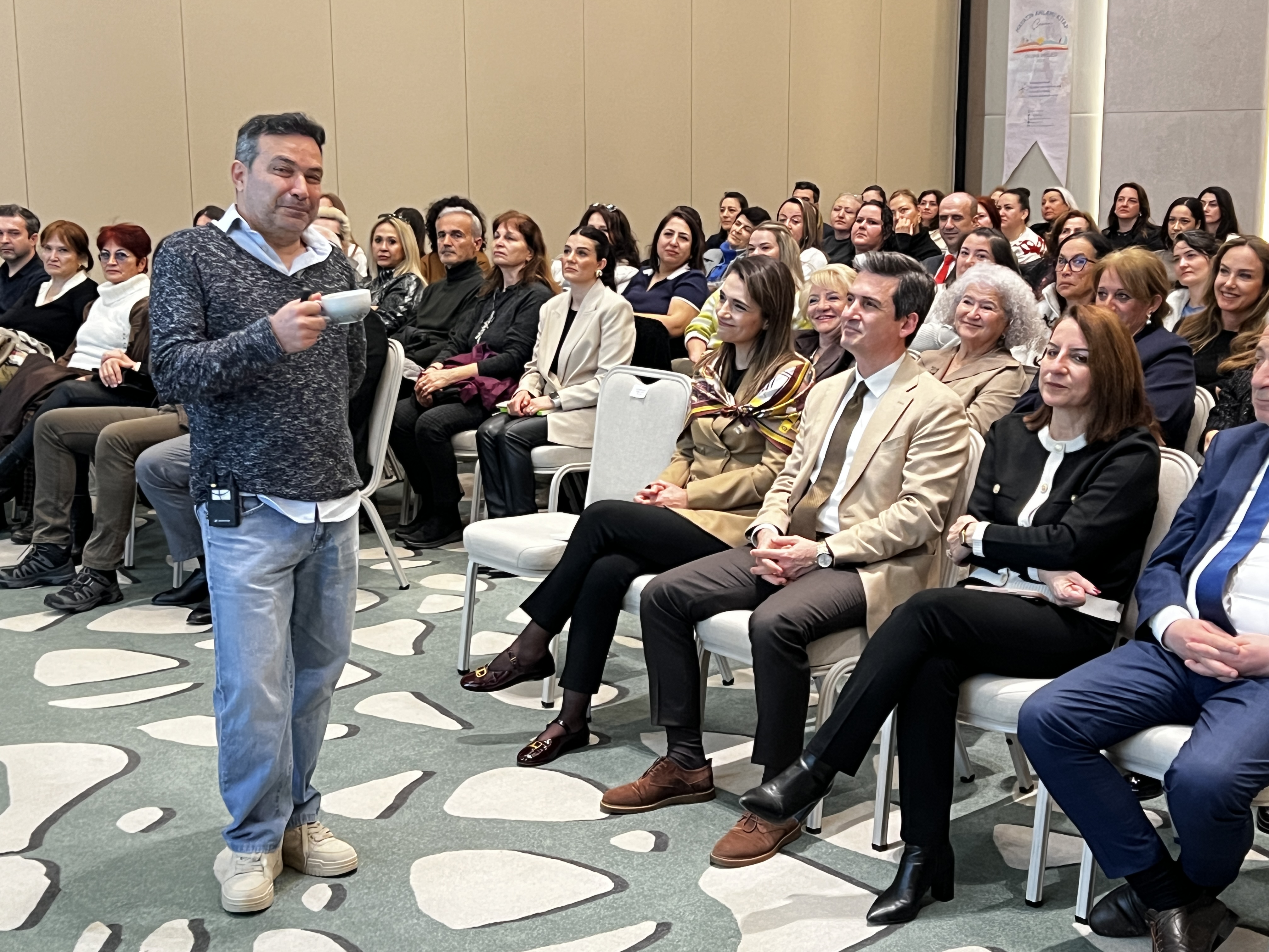 Çeşme Swiss Otel'de gerçekleştirilen söyleşiye Çeşme Kaymakamı Mehmet Maraşlı, proje koordinatörü Arzu Güleryüz Maraşlı, Çeşme Belediye Başkan Yardımcısı Banu Ayhan, siyasi parti ve STK temsilcileri ile Çeşme İlçe Milli Eğitim Müdürü Şahan Çöker ve ilçede görev yapam öğretmenler katıldı.