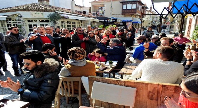 Alaçatı çarşı esnafı, pazar esnafı ve vatandaşlarla kucaklaşarak, projeleri hakkında bilgi veren Belediye Başkan Adayı Oran, Büyükşehir Belediye Yasası'nın çıkmasıyla 2014 yılında Alaçatı Belediyesi'nin kapatılmasıyla atıl durumda kalan Belediye binasını, yaz başında hizmet binasına dönüştüreceklerini söyledi.