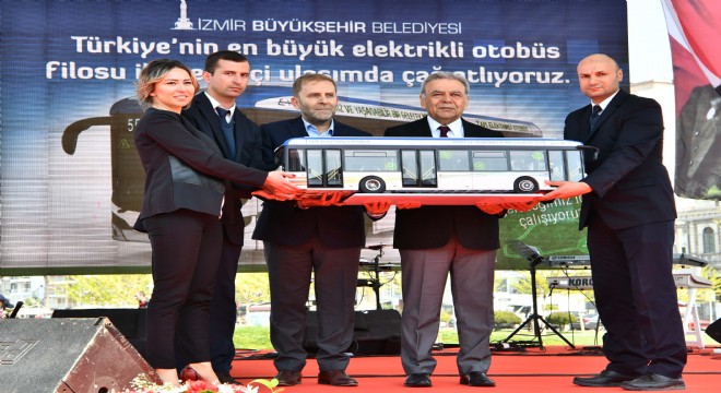 Tamamen yerli teknolojiyle Bozankaya firması tarafından üretilen 20 elektrikli otobüsün seferlere başlaması öncesinde Gündoğdu Meydanı’nda düzenlenen törene, İzmirliler büyük ilgi gösterdi. İzmir Büyükşehir Belediye Başkanı Aziz Kocaoğlu “Tükiye’nin öncü ve en aydınlık kenti olarak bugün Türkiye’de bir ilki daha gerçekleştiriyoruz. Biz bu aydınlığı, bu kentte yaşayan insanlara borçluyuz. Biz Türkiye’yi İzmir gibi yapmak, Türkiye’yi İzmir’e benzetmek istiyoruz” diye konuştu.