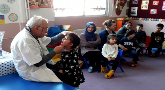 Emekli Diş Doktoru Mustafa Yıldırım, gönüllü olarak, ilkokul öğrenicilerinin diş taramasını yaparak, diş sağlığı konusunda bilgilendirdi.