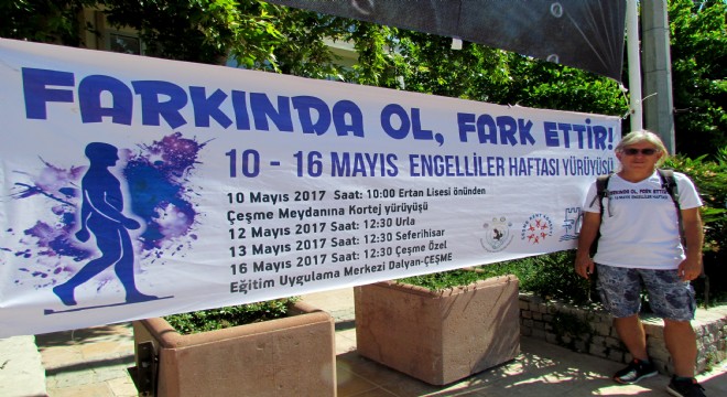 Zihinsel Engelliler Federasyonu'nun Çeşme'de yaptığı yürüyüşe de katılan Olcay Yersel, daha sonra 6 gün sürecek Urla, Seferihisar, Urla, Çeşme rotasındaki yürüyüşüne başladı.