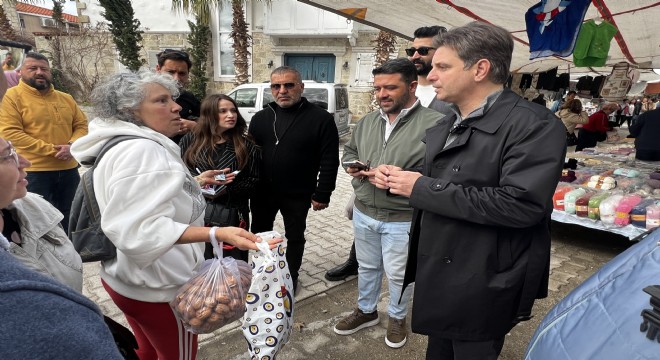 Yerel seçimler öncesi Çeşme siyasetinde adaylar proje tanıtımlarına devam ederken Cumhur İttifakı adayı Esat Tanık Alaçatı pazarını ziyaret ederek esnaf ve vatandaşlarla konuştu.
