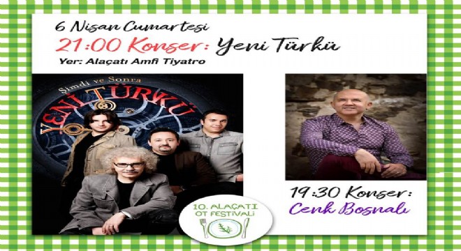 Festivalin ikinci konseri ise, saat 21.00'de, Alaçatı Amfi Tiyatro'da, Yeni Türkü grubu tarafından verilecek. 1977 yılında Derya Köroğlu, Zerrin Yaşar ve Selim Atakan'ın Ankara'da kurduğu müzik topluluğu olan Yeni Türkü, halk türkülerinin yeniden yorumlanmasına dayanan Güney Amerika orijinli bir müzik yapmaları ile tanınıyor. Buğdayın Türküsü, Akdeniz Akdeniz, Günebakan, Dünyanın Kapıları, Yeşilmişik, Vira Vira, Aşk Yeniden, Külhani Şarkılar, Yeni, Şimdi ve Sonra gibi birçok albümü bulunan ve çok sayıda film müziği de yapan Yeni Türkü, Alaçatı Ot Festivali'nde, müzikle dolu, unutulmaz bir gece yaşatacak.