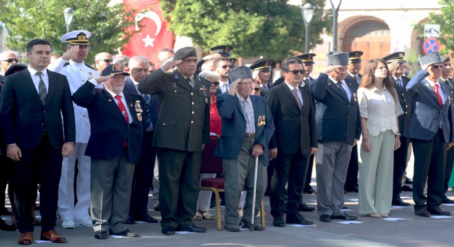Çeşme Cumhuriyet Meydanı'nda düzenlenen törene, Çeşme Kaymakamı Mehmet Maraşlı, Garnizon omutanı Albay Ali Tümer, Çeşme Belediye Başkanı Lal Denizli, Çeşme Cumhuriyet Başsavcısı Mustafa Şen, İlçe Emniyet Müdürü Murat Dokumacı, İlçe Jandarma Komutanı Yavuz Yaşar, Sahil Güvenlik Komutanı Binbaşı Akın Satkan ve Siyasi Parti temsilcileri, STK temsilcileri, Oda Başkanları, Gaziler ve çok sayıda vatandaş katıldı.
