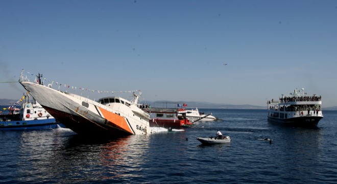 TCSG 68 Sahil Güvenlik gemisi, yapılan konuşmaların ardından, saygı duruşu ve İstiklal Marşı'nın okunmasının ardından, teknelerin siren sesleri arasında batırıldı.