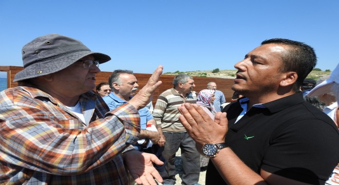 Elliyi aşkın vatandaşın inşaat alanında toplanması üzerine önce sert tepki göstererek, inşaat alanının terk edilmesini isteyen inşaat yetkilisi Halil İbrahim Karagöz, tartışmalar uzayınca, uzaklaşarak bir süre uzaktan izledi. Daha sonra vatandaşların yanına tekrar gelen Karagöz, yapılan çalışmalarda yasalar aykırı bir şey olmadığını söyledi. Sitelerdeki vatandaşlar için plajın bitiminde bir halk plajı ayrıldığını söyleyen inşaat yetkilisi İbrahim Karagöz, site yöneticileri ile de görüştüklerini belirterek kimseyi açıkta bırakmak gibi bir niyetleri olmadığını söyledi. Kendi kullanacakları plajdan sonraki 120 metrelik alanı iş makinaları ile plaja çevireceklerini ifade eden Karagöz'e tepki gösteren vatandaşlar söz konusu bölgenin kayalık ve deniz kestaneleri ile dolu olması nedeniyle denize girmeye elverişli olmadığı söylediler.