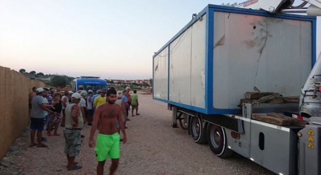 Tepkiler üzerine, plaja indirilen konteyner, geri alınarak yol kıyısına konuldu.