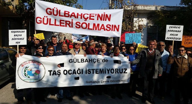 Gülbahçe Muhtarı Alahettin Bulut halk olarak taş ocaklarını istemediklerini belirtti. “Para sevgisi, doğa sevgisinin önüne geçmiş olanlar dün Karaburun’da, İçmeler’de, Yağcılar’da ve Özbek’teydiler. Bugün ise gözlerini Gülbahçemiz’e dikmişler” diyen Bulut, “Dağlarında koyun, keçi otlattığımız, derelerinden su içtiğimiz, havasıyla sağlık bulduğumuz bu güzelim yarımadayı delik deşik edip çölleştirmek istiyorlar. Ama bizler direneceğiz ve buna izin vermeyeceğiz” dedi.
