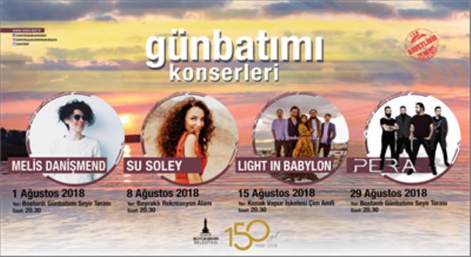 Geçtiğimiz yıl büyük ilgi gören İzmir Büyükşehir Belediyesi "Günbatımı Konserleri", bu yıl ikinci kez müzikseverlerle buluşmaya hazırlanıyor. İzmirliler tarafından çok beğenilen bu ücretsiz konser dizisi kapsamında kentin farklı noktalarında gerçekleştirilecek performanslar, sıcak yaz gecelerinde İzmirlilere tatlı bir esinti yaşatacak. Bostanlı Seyir Terası, Bayraklı Rekreasyon Alanı ve Konak Vapur İskelesi önündeki konserler, denize kurulan platformlar üzerinde düzenlenecek.