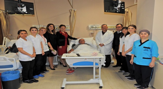 Haftada üç gün, dörder saat diyaliz makinesine bağlanarak tedavi gören eski muhtar Osman Bozdoğan, kendisini ziyarete gelen Çeşme Devlet Hastanesi Başhekimi Opr. Dr. Atıl Birol, Sağlık Bakım Hizmetleri Müdürü Merve Yaşar ve Hemodiyaliz Birimi Sorumlu Hekimi Dr. Hale Yazgan'a teşekkür ederek birer çiçek verdi.