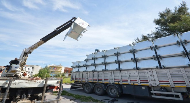 İzmir Büyükşehir Belediyesi "Daha temiz bir İzmir" için çalışmalarını sürdürüyor. Geçtiğimiz yıl ilçe belediyelerine 6 bin adet yeni çöp konteyneri dağıtan İzmir Büyükşehir Belediyesi, bu yıl da 5 bin 500 konteyner hibe etti.