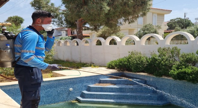 İzmir Büyükşehir Belediyesi, baharın gelişiyle ilaçlama çalışmalarına hız verdi. İzmir'in önemli turizm merkezlerinden Çeşme'de de yoğun çalışma sürdürülüyor. İlçede 365 gün ilaçlama yapan 20 kişilik ekibe, kent merkezinden 60 kişilik uygulayıcı ve 6 sorumlu personel de dahil oldu. Ekipler haşere üretebilecek havuz, kanalizasyon, sulak alanlar gibi tüm noktaları ilaçladı. Geniş çaplı ilaçlama çalışmaları Urla ve Karaburun'da tamamlandı, ilerleyen günlerde de Foça, Menderes, Seferihisar gibi yazlık bölgelerde yapılacak.