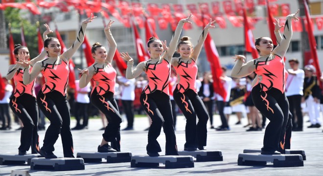 Gençlik Spor  İl Müdürlüğü’nün Atatürk anıtına çelenk koymasının ardından saygı duruşu ve İstiklal Marşı okundu. Ellerinde Türk bayrakları ile Cumhuriyet Meydanı'na akın eden İzmirliler, Atatürk'ün Gençliğe Hitabesi'ni hep bir ağızdan okuyarak İzmir'in bayram coşkusunu tüm Türkiye’ye gösterdi. Törene İzmir Valisi Erol Ayyıldız, Ege Ordusu ve Garnizon Komutanı Orgenaral Abdullah Recep, İzmir Büyükşehir Belediyesi Başkan Vekili Dr. Sırrı Aydoğan ile İzmir Büyükşehir Belediye Başkanı Aziz Kocaoğlu’nun eşi Dr. Türkegül Kocaoğlu katıldı. Gençlerin dans, jimnastik göste risi ile devam eden kutlumalar,  İzmirliler’in hep bir ağızdan 10. Yıl ile İzmir Marşı’nı coşkuyla söylemelerinin ardından sona erdi.
