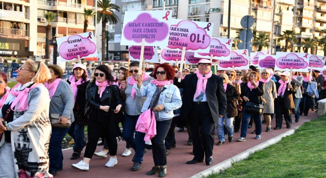 İzmir Büyükşehir Belediyesi meclis üyesi ve bürokratları ile SAĞ-KAL, Kanserle Mücadeleyi Destekleme Derneği, MEMEKANDER Meme Kanseri İle Savaşım Derneği, Güzelyalı Sağlıklı Yaş Alma Alzheimer Merkezi, Tülay Aktaş Gönüllüleri Güçbirliği, Türkiye Yardımseverler Derneği, Türk Kadınlar Konseyi Derneği, Konak Kent Konseyi, Türk Kadınlar Birliği Derneği ve Kanserle Dans Derneği üyelerinin bir araya geldiği buluşmada, kanserle mücadele çağrısı yapıldı. Gündoğdu Meydanı’nda toplanan grubun Alsancak İskelesi'ne yaptığı yürüyüşe, bisikletlerini pembe balonlarla süsleyen kadınlar da katıldı. Pembe renkle süslenmiş vapur ile Konak İskelesi'ne gelen grubun sözcüsü İzmir Büyükşehir Belediyesi Meclis Üyesi Hatice Tatlı, pembe ışıkla aydınlatılan Tarihi Saat Kulesi'nin önünde bir farkındalık konuşması yaptı. Tatlı, meme kanserinde erken teşhisin ve periyodik muayenelerin önemine değinerek bilinçsizlik nedeniyle çoğu tanıda geç kalındığını vurguladı. Etkinlikte, pembe fular takarak destek veren erkekler de yer aldı.