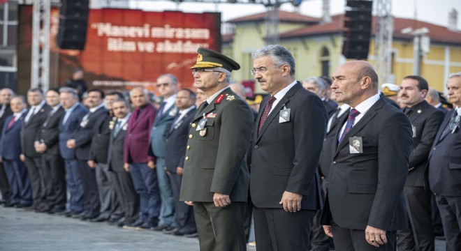 İzmir Valisi Erol Ayyıldız, Ege Ordusu ve Garnizon Komutanı Korgeneral Ali Sivri ve İzmir Büyükşehir Belediye Başkanı Tunç Soyer'in yanı sıra, resmi kurum ve kuruluşların temsilcilerinin katıldığı Cumhuriyet Meydanı'ndaki törende Atatürk Anıtı'na da çelenkler bırakıldı.