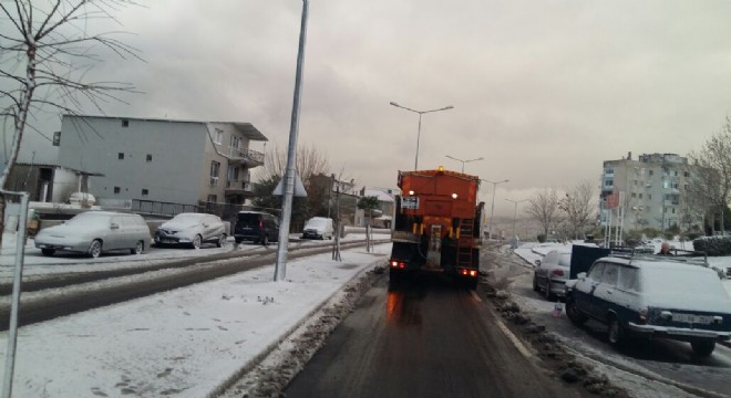 Bornova’da Atatürk Mahallesi, Evka – 4, Homeros Vadisi, Evka -3, Buca’da Gültepe, Toros, Karabağlar’da Kavacık, Tırazlı, Limontepe, Yeşilyurt Polis Karakolu çevresi, Esendere Çamlık Caddesi, Afet Evleri, Konak’ta Çınartepe Dicle Caddesi, Buca’da Evka-1, Uzundere TOKİ konutları bölgesi, Narlıdere’de 1. İnönü, Arıkent, Narbel, Atatürk Mahallesi, Çiğli’de Evka-5, Evka -6, Güzelbahçe Payamlı, Bayraklı Doğançay Sancaklı, Onur Mahallesi Körfez Evleri, Kemalpaşa’da Ovacık, Bayramlı, Menderes’de Efemçukuru, Urla’da Yağcılar, Karaburun’da merkez, Mordoğan, İncecik, Eylemocağı, Kösedere, Yaylacık ve Ovacık, Menemen’de Karaorman, Atatürk Mahallesi, Seferihisar Çamtepe, Bayındır Sarıyurt, Kızılkeçili, Beydağ Eğridere, Çamlık, Erikli, Ovacık, Adaküre, Beyköy, Kiraz Dokuzlar, Bahçelerararası, Cevizli, İğdelig, Olgunlar, Ödemiş Hacıhasan, Yılanlı, Bıçakçı, Bozdağ kayak merkezi, Artıcan, Subatan, Tire’de Dallık, Yamandere, Canbazlı, Büyükkemerdere, Küçükkemerdere, Toparlar, Bergama’da Yuntdağı, Göçbeyli, Dikili’de merkez, Çandarlı, Çağlan, Samanlık, Yenice, Kıroba, Kocaoba, Mazılı, Alacalar, Denizköy, Kınık Çanköy, Karadere, Arpadere, Büyükoba’da tuzlama ve yol açma çalışmaları devam ediyor.