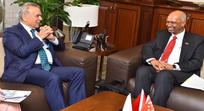 Singapur'un Ankara Büyükelçisi A.Selverajah, ülkesinin İzmir Fahri Konsolosu Murat Özyeğin'le birlikte İzmir Büyükşehir Belediyesi'ni ziyaret etti. Başkan Aziz Kocaoğlu, Fahri Konsolosluk görevine yeni atanan Özyeğin'in son derece iyi bir tercih olduğunu belirterek, ilişkilerin gelişmesi adına önemli katkılar sağlayacağını söyledi. 2004 yılından itibaren yerel yönetimlerde yeni bir pencere açtıklarını dile getiren Başkan Kocaoğlu, "Biz kendimizi şehrin kalkınmasından da sorumlu hissediyoruz. Bu anlamda Sayın Murat Özyeğin'den de alacağımız öneriler olacaktır" diye konuştu.
