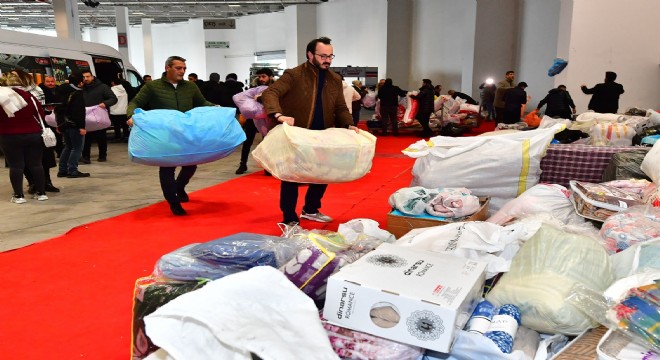 Bağış çalışmasına destek veren Zeki Aksoy ise “İnsanların birbirlerine kara günde destek olması lazım. Birbirimizin elinden tutup güçlenmemiz lazım. Bunun da üstesinden geleceğimize inanıyorum. Kızımla beraber giyecek, ayakkabı, uyku seti getirdik. Bankaya giderek maddi yönden de katkıda bulunacağız. Depreme maruz kalan bütün vatandaşlarımıza geçmiş olsun dileklerimi iletiyorum. Enkaz altında kalanlara şifalar diliyorum. Vefat edenlere de Allah rahmet eylesin. Ayrıca İzmir Büyükşehir Belediye Başkanı Tunç Soyer’e de bu kampanyayı başlattığı için çok teşekkür ediyorum. İyi varsınız iyi ki varız” ifadelerini kullandı.