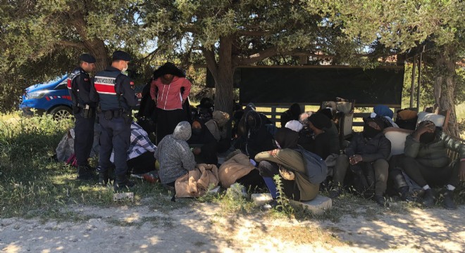 Edinilen bilgiye göre, bugün saat 11.00 sıralarında Jandarma ekipleri devriye görevi sırasında, ormanlık alanda çalılıklar içerisine gizlenmiş bir grup düzensiz göçmen tespit etti.