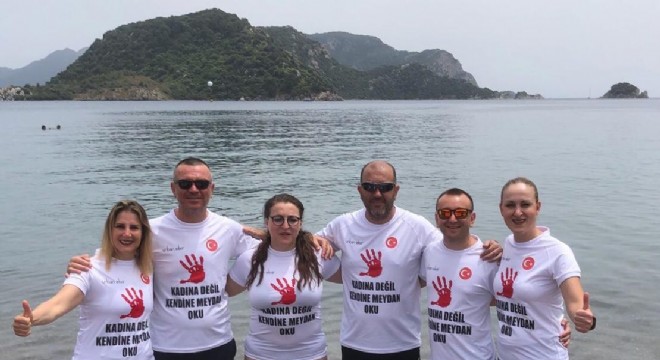 “Gücün ve cesaretin var ise, Kadına Değil Kendine Meydan Oku” Sloganıyla kendi alanlarında önemli başarılara imza atan ve görev yaptıkları şirketlerin üst düzey yöneticiliklerinde bulunan 3'ü erkek 6 kişilik ekip, kadına yönelik şiddete dikkat çekmek için 1’er saat arayla 24 saat boyunca Çeşme Marina’dan Seferihisar Marina’ya kadar yüzecek. Daha önce Türkiye ile Yunan adaları arasında, Manş Denizi ve Cebelitarık Boğazı'nda yüzen ekip üyeleri, 24 Ağustos’ta 80 km uzunluğundaki parkuru geçecekler. "Kadına değil, Kendine Meydan Oku" sloganıyla yüzecek olan ekibin başlarındaki bonelerde ise şiddet gören kadınların isimleri yazacak.