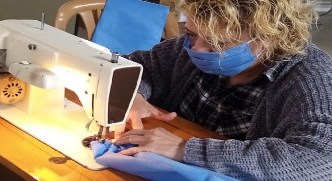 Koronavirüs salgını sonrasında örnek bir dayanışma örneği sergilenen Karaburun’da, belediyenin Makrome Kursu katılımcısı kadınlar, maske üretiminden sonra tek kullanımlık sağlıkçı önlüğü dikimine de başladı.