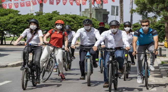Projeleri yerinde incelemek için bisikletiyle rotaları gezen Soyer, “Salgının yayılım hızı düştükten sonra toplu ulaşımın daha az kullanılması öngörülüyor. O nedenle iki teker üzerinde hayatı teşvik etmek için kent içindeki birçok arterde yeni bisiklet yolları yapımına başladık” dedi.