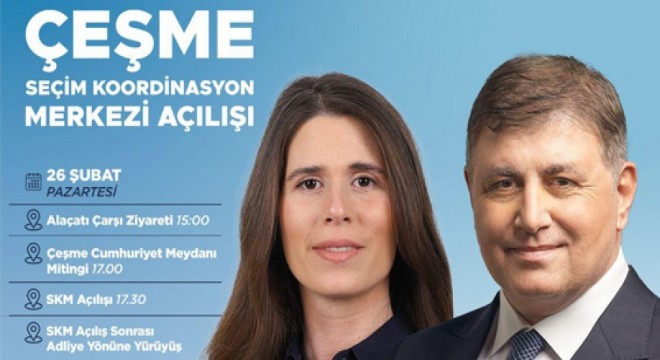 CHP Çeşme Belediye Başkan adayı Lal Denizli, seçim çalışmaları kapsamındaki ilk mitingini, 26 Şubat Pazartesi günü saat 17.00'de, İzmir Büyükşehir Belediye Başkan adayı Cemil Tugay'ın katılımıyla, Çeşme Cumhuriyet Meydanı'nda gerçekleştirecek.