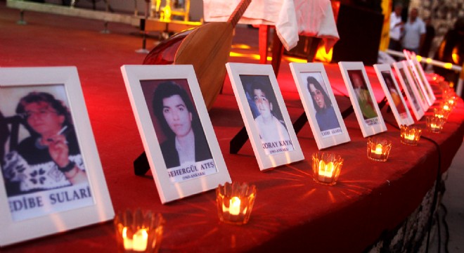 Özel anma gecesinin ikinci bölümü ise Alaçatı Amfi Tiyatro'da gerçekleştirildi. Sivas Madımak Oteli'nde yanarak hayatlarını kaybedenlerin fotoğraflarının yerleştirildiği sahnede, her fotoğrafın önünde mumlar yakıldı. Hayatlarını kaybedenler için yapılan saygı duruşunun ardından anma gecesinin açılış konuşmasını yapan Pir Sultan Abdal Kültür Derneği Çeşme Şubesi Başkanı Sedat Mutlu, Hasret Gültekin'in "Gelin sizinle, insanlıkları satanlara inat, oturup türkü söyleyelim" dizesiyle başladığı konuşmasında, "2 Temmuz Madımak, bizim için, 'çok kara gün' demenin bile az kaldığı günlerden bir tanesi. İnsanlığın yandığı, ayaklar altına alındığı kara bir gün. 33 canımız, vicdansızca, insafsızca, bir inanç uğruna insan yakmayı hak gören zavallılar tarafından kara bir güne çevrilen 2 Temmuz 1993'te yakıldı. Dönemin Başbakanı; 'Çok şükür otel dışındakilerin burnu kanamadan olaylar bastırıldı' dedi. Bu açıklamayla, insanlık bir kez daha yakıldı. Madımak, bitmeyen bir dava oldu. En son 10 gün önce görülen dava, 28 Kasım tarihine ertelendi" diye konuştu.