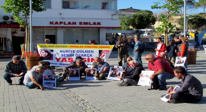 Çeşme çarşısı girişindeki meydanda gerçekleştirilen eylemde Çeşme Demokrasi Platformu adına bir basın açıklaması yapan Eğitim-Sen Çeşme Temsilciliği Başkanı Hasan Karakaya, mesleklerinden ihraç edilen eğitim emekçilerinin açlık grevinde 72'inci güne girdiklerini ve yaşamlarından endişe duyduklarını belirterek, "KHK ile haksız ve hukuksuz biçimde ihraç edilen sendikamız Eğitim-Sen üyeleri Akademisyen Nuriye Gülmen ve öğretmen Semih Özakça, Ankara'da, kendi özgür iradeleriyle, 'İşimi geri istiyorum' talebiyle, süresiz açlık grevine başlamış ve eylemlerinde kritik bir döneme, 72. güne girmişlerdir. Sendikalar, demokratik kitle örgütleri, aydınlar, sanatçılar, demokrasi güçleri ve bizler, Nuriye Gülmen ve Semih Özakça'nın sağlıklarından ve yaşamlarından endişe etmekte, kaygı duymaktayız" dedi.
